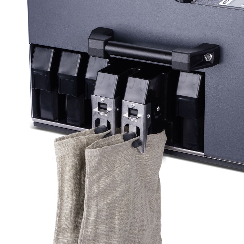 Innovative Lösung zum Fixieren von Münzsäcken und Plastik-Safebags bzw. -Sicherheitstaschen